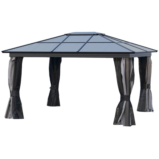 4 x 3.6m Hardtop Gazebo with UV Resistant Polycarbonate Roof & Aluminium Frame, Garden Pavilion with Mosquito Netting and Curtains