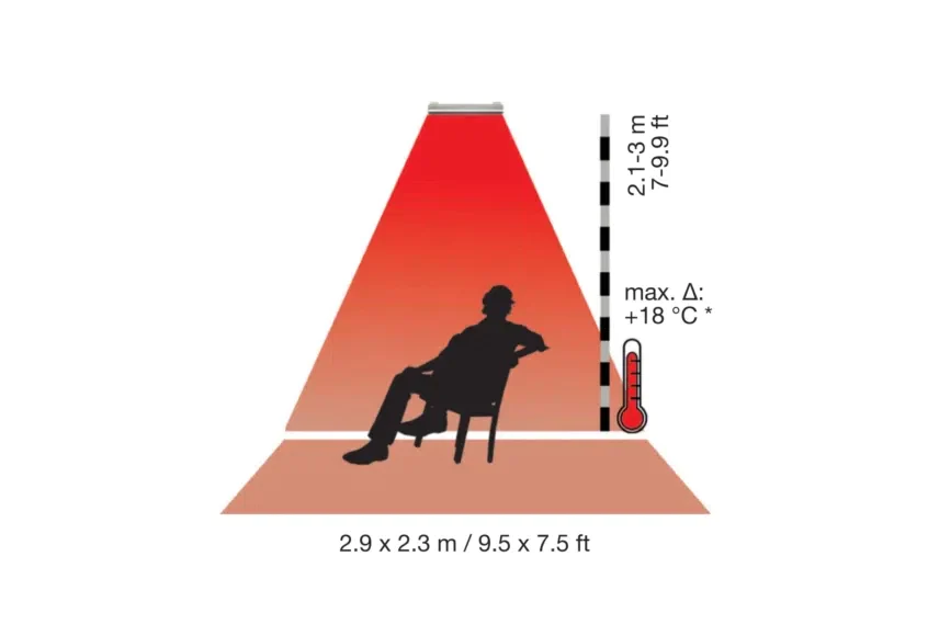 Up to 94% of the energy used is turned into ambient heat and transferred directly to nearby people and surfaces for maximum efficiency.