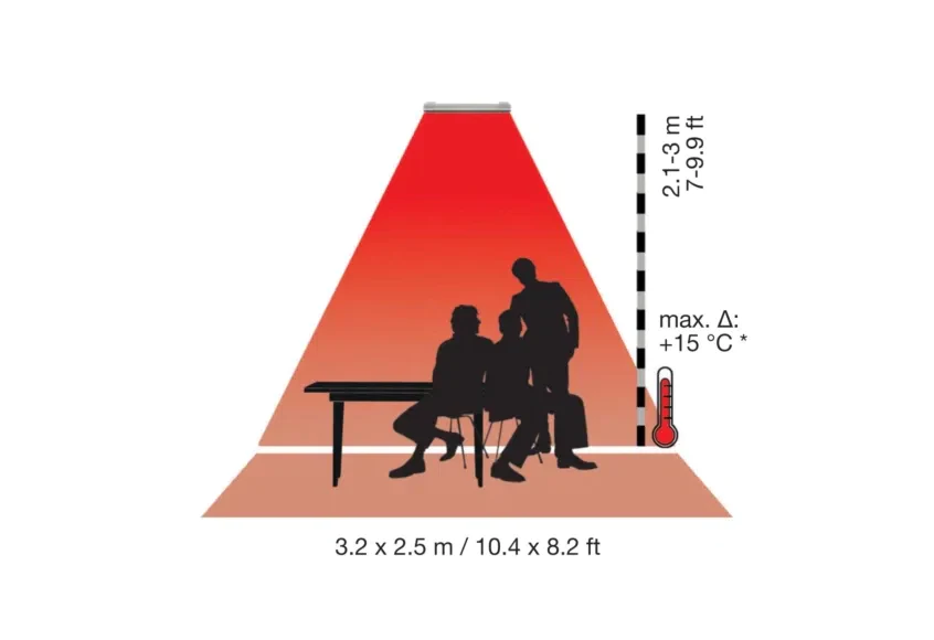 *All values are approximate. Max. temperature increases achievable in enclosed spaces at 16 °C (dependent on the respective installation conditions and mounting height).